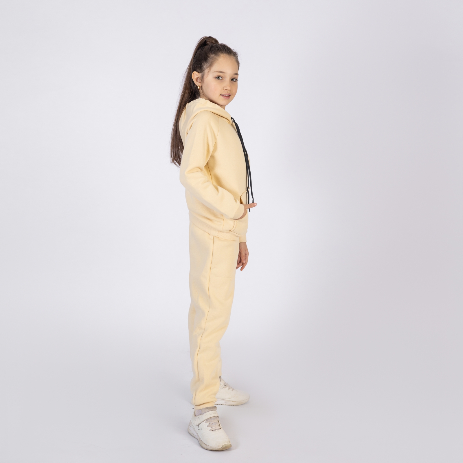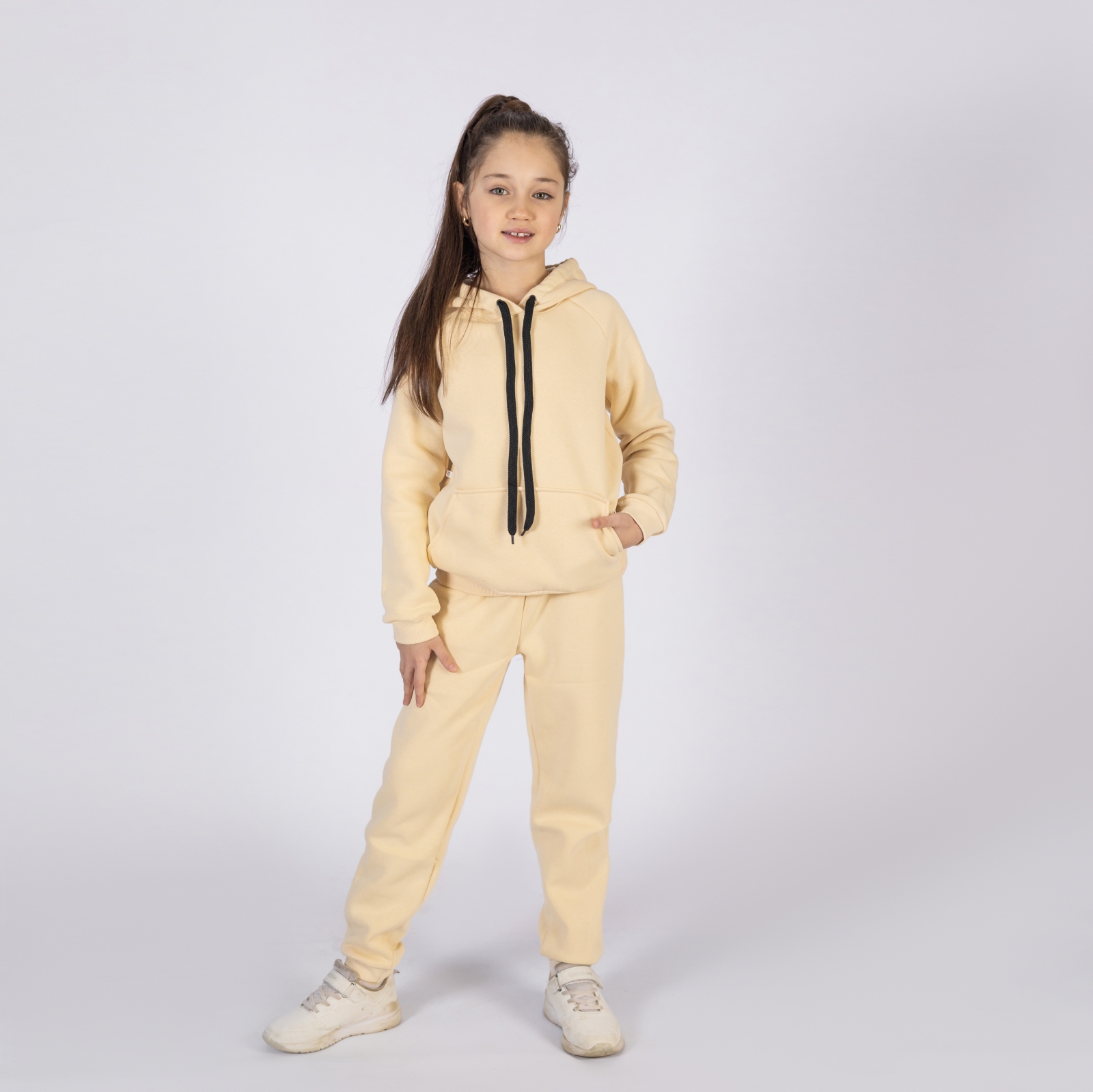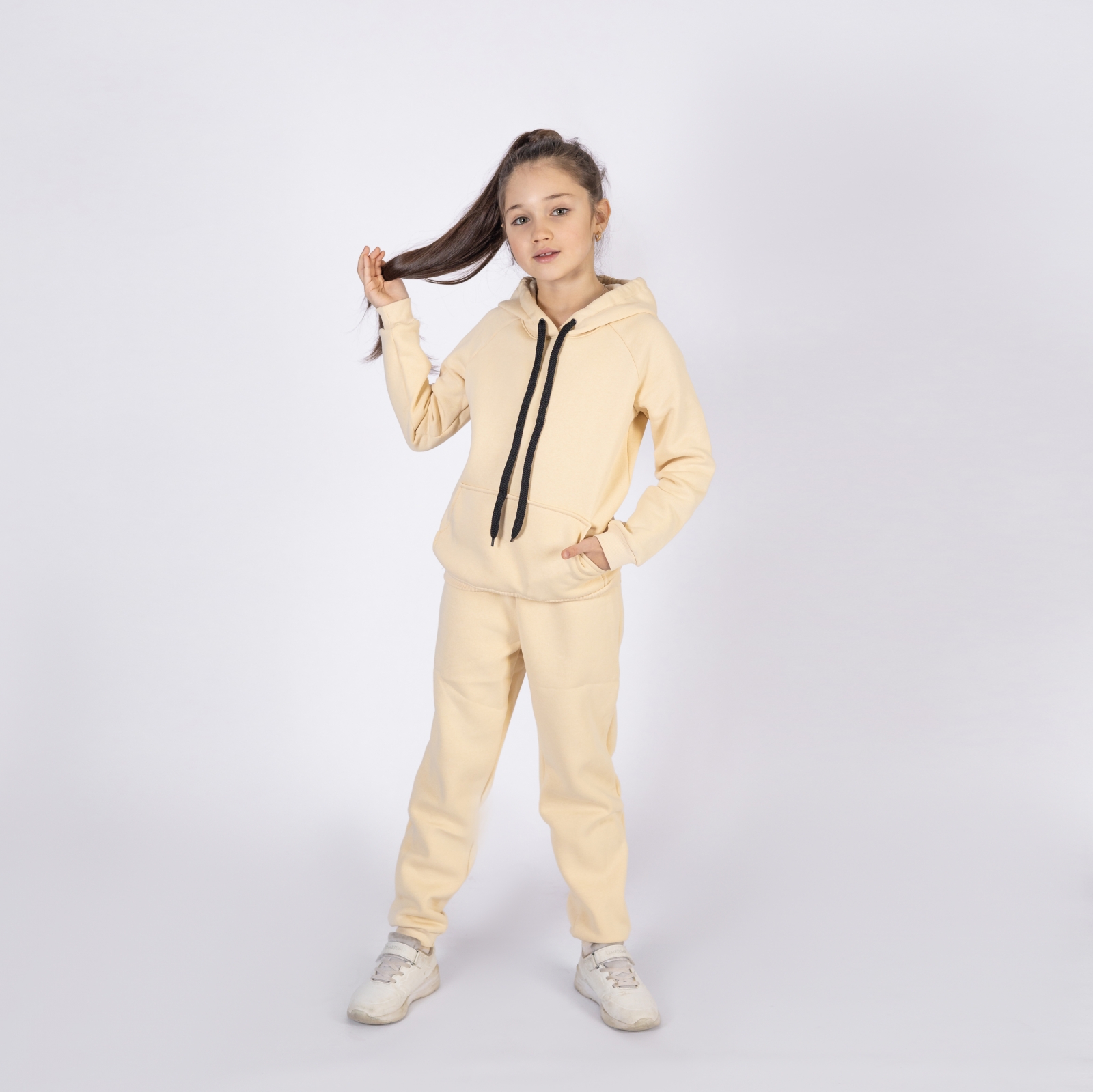 Купить оптом 296-СЛ. Свитшот с капюшоном + Штаны, хлопок 65%, 35% ПЭ, 3-х нитка (начес) сливочный 80,86,92 в Абакане