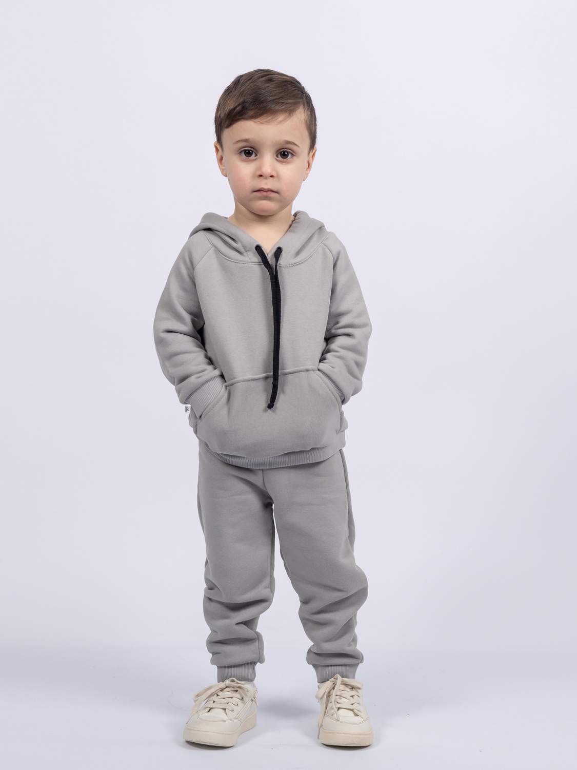 Теги: Детские костюмы оптом от производителя. 311-ГР. Свитшот с капюшоном + Штаны, хлопок 65%, 35% ПЭ, 3-х нитка ( без начеса) графит 80,86,92 цена,отзывы официальный сайт "Стеша Абакан"